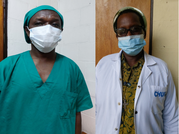 Urologist surgeon Doctor Alex Bonane with Sister Dancilla Nyirasebura matron of surgical theatre